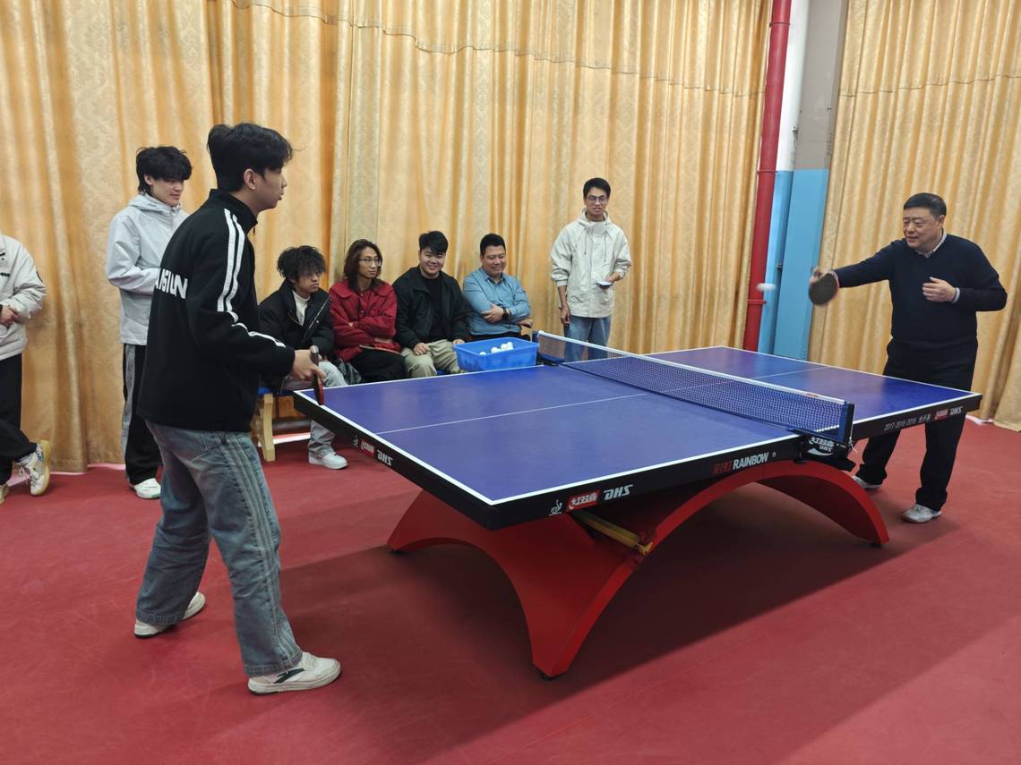 随后的“友谊对抗赛”将活动推向了高潮。马长世书记轮流与各队学生代表切磋球技。球台之上,推挡、削球、扣杀,精彩回合不时出现;球台之侧,加油声、喝彩声、掌声此起彼伏。马书记稳健的球风、灵活的反应赢得了同学们的阵阵赞叹,而他脸上始终洋溢着的亲切笑容,更是化解了同学们最初的拘谨,让大家真切感受到了师长平易近人的魅力。比赛有胜负,交流无界限。小小的乒乓球在空中划出一道道友谊的弧线,紧密连接起了师生的心灵。