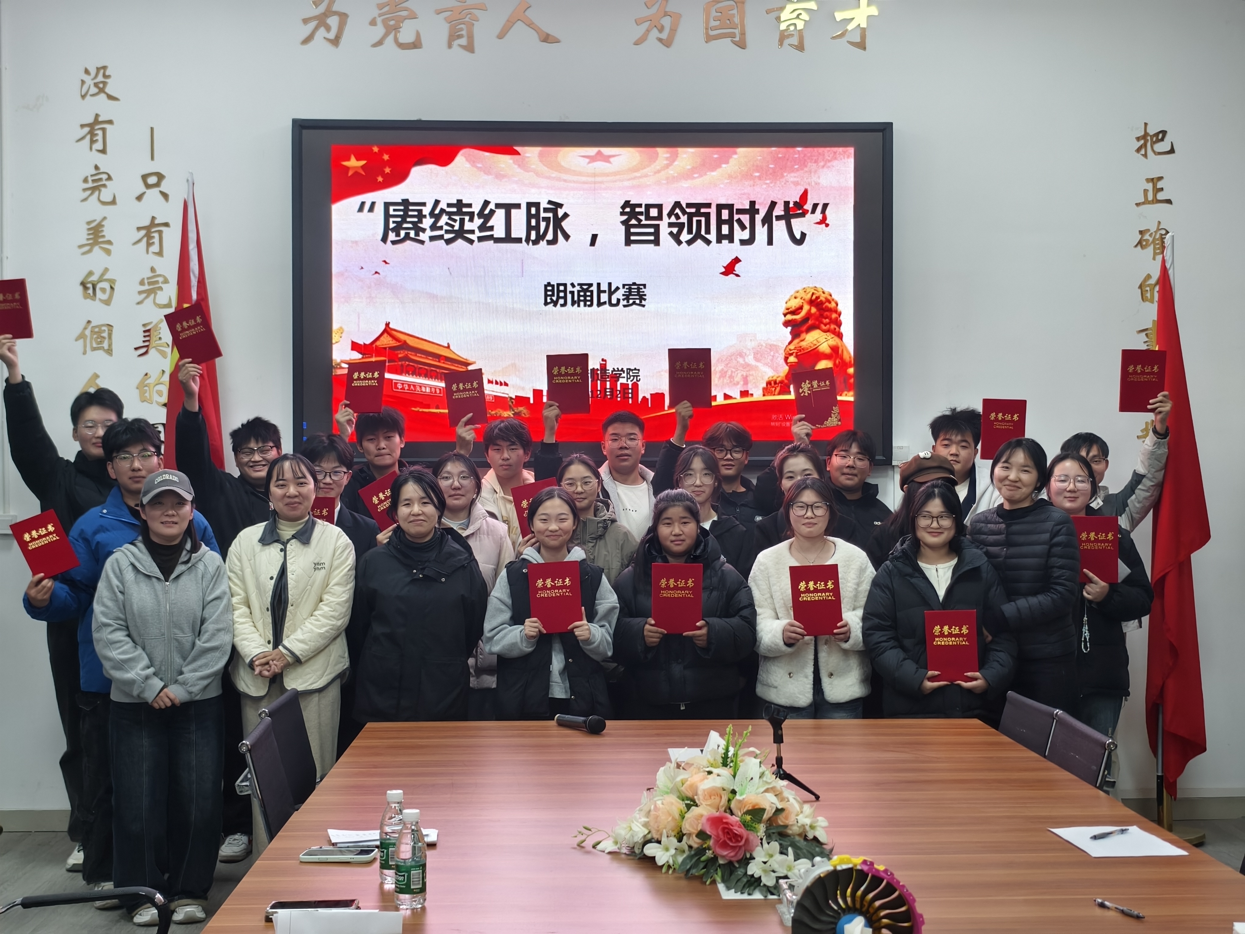为深入学习贯彻习近平新时代中国特色社会主义思想,传承红色基因,凝聚奋进力量,12月2日,智能制造学院“赓续红色血脉 续写时代华章”主题朗诵比赛在S3 A区一楼会议室隆重举行。来自各专业的同学同台竞技,用真挚的情感、激昂的语调,为现场师生呈现了一场精彩纷呈的视听盛宴。