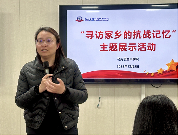 12月5日下午,马克思主义学院在智慧教室举办“寻访家乡的抗战记忆”主题展示活动。学校党委委员、校长助理苏琼瑶,教务处副处长张颖出席活动,马院全体专兼职思政课教师、学生代表参加活动。