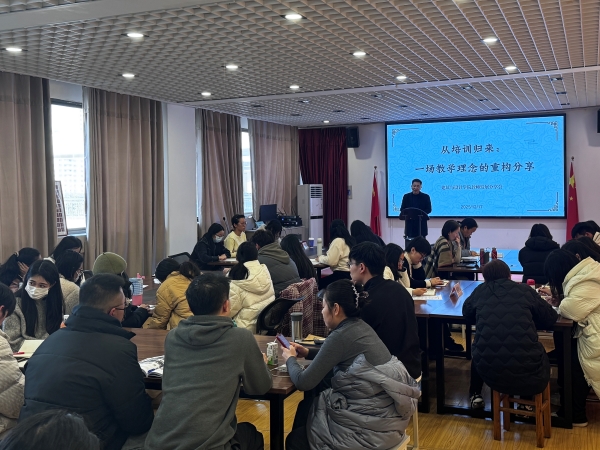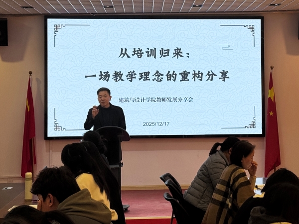 12月17日下午,建筑与设计学院召开“从培训归来:一场教育理念的重构分享”教师发展分享会,李珂、张明茹两位老师就2025年参加的国培、省培项目内容进行了精彩分享。本次活动旨在促进教学经验交流,推动教育改革创新,学院全体教职工参会,并进行热烈探讨。