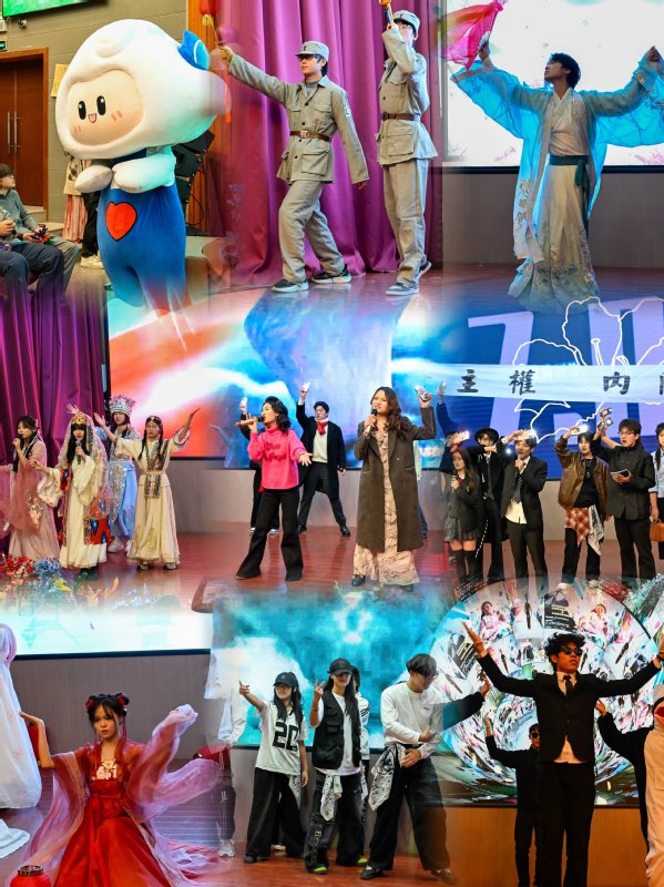 乐队表演《至少还有你》以动人的旋律点燃全场;戏曲《探窗》韵味悠长,展现传统文化魅力;舞蹈《红昭愿》《街舞风暴》与《赛博积歌越扭越上头》或柔美婉约,或动感十足,引发阵阵掌声;歌曲《爱错》《滚烫青春乐章》《年少有为》《想你的夜》等深情演绎,唱出青春心声。情景走秀《薪火向青春》将时尚与创意结合,彰显学子个性;小品《庸医》幽默风趣,笑点频出,引得观众捧腹。