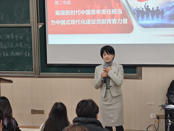 12月24日上午,学校党委委员、校长助理苏琼瑶以“成为一名坚定的青年马克思主义者”为题,从“马克思是谁?什么是马克思主义?什么是青年马克思主义者?为什么要培养青年马克思主义者?怎样成为坚定的青年马克思主义者?怎样成为优秀的青年马克思主义者”等六个方面,详细讲解了马克思的生平、马克思主义的科学内涵、培养青年马克思主义者的重要意义,并以beat365参加九三阅兵的三位学生为例,引导同学们树立正确的人生观、世界观和价值观。最后,她勉励同学们要树立远大理想,坚定理想信念,厚植家国情怀,锤炼道德品质,学好专业技能,加强身体锻炼,努力成长为堪当民族复兴重任的时代新人。