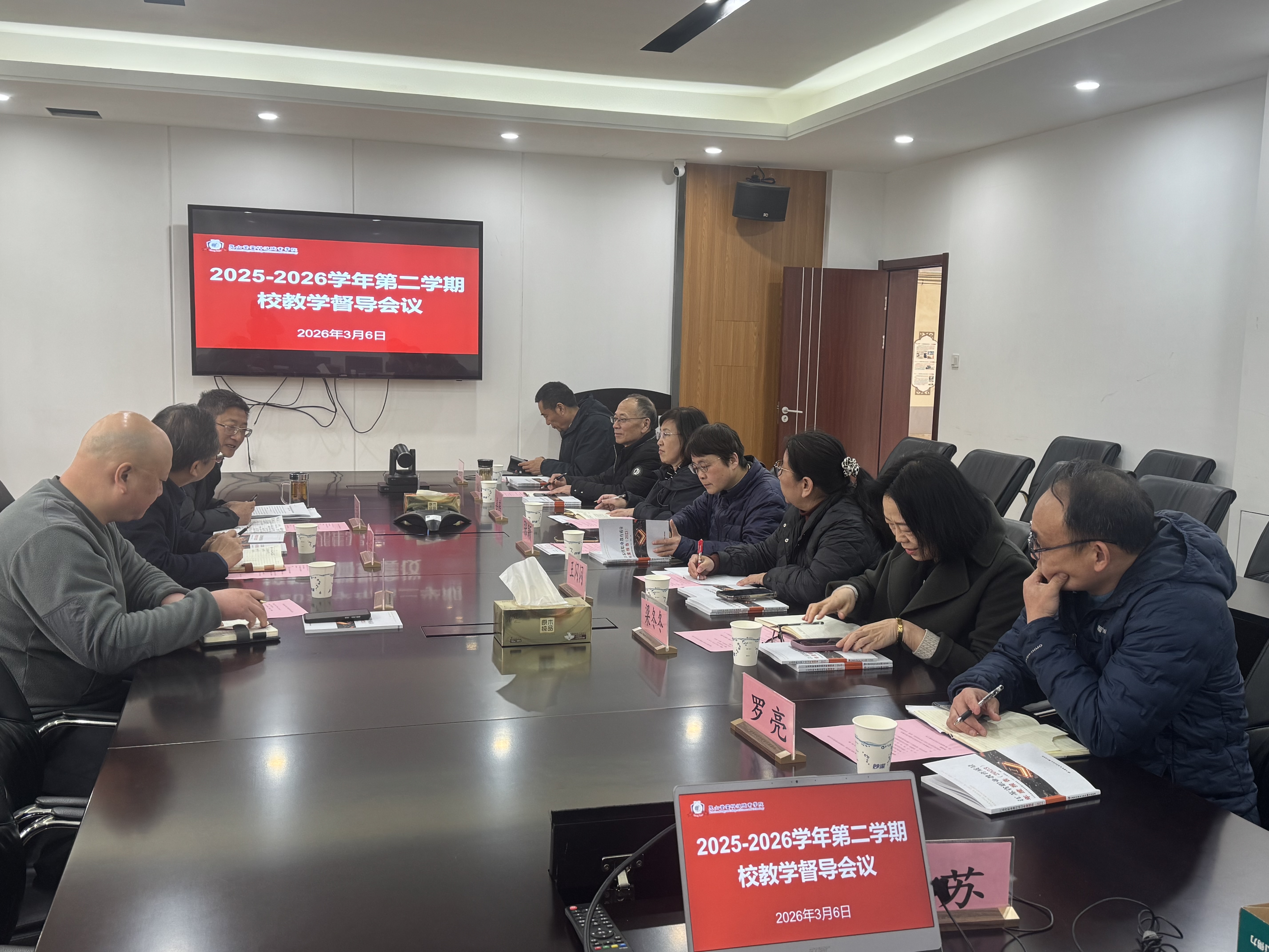 会议重点学习了《江苏省高等职业学校办学能力评价实施方案》和《江苏省职业教育教学质量提升行动方案(2026-2030年)》两份文件,明确了本学期督导工作的政策依据与行动方向。结合文件要求,王主任提出本学期督导工作的三大重点:一是推进课堂规范管理,提升学生“三率”(到课率、抬头率、前排率);二是优化听课评价标准,解决“评价区分度不足”“标准不统一”等问题;三是助力“五好课堂”建设,推动教学从“以教为中心”向“以学为中心”转变。同时,他要求教学督导加强学习、强化沟通,用好在线听课平台,在助力教师提升课堂教学能力上精准发力。